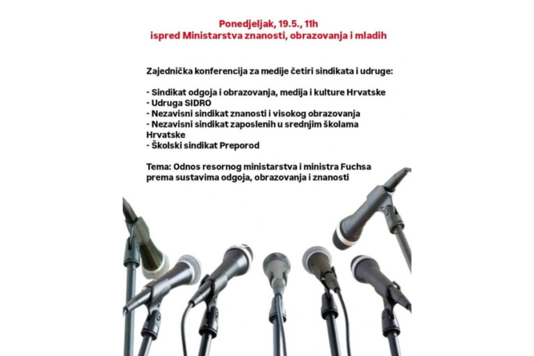 Nakon konferencije za medije, predstavnici četiriju sindikata i Udruge Sidro tražili su u MZOM-u da ih se primi na razgovor kod ministra. Poziv je uskoro stigao, a sastanku su iz Ministarstva nazočili ministar Radovan Fuchs, državni tajnik Stipe Mamić, državna tajnica Zrinka Mužinić-Bikić i savjetnik ministra Božo Pavičin. Nakon kraćeg razgovora, sindikati su predložili da se iznađe termin za još jedan sastanak i pokušaj dogovora prije poduzimanja naših daljnjih akcija. Ministar Fuchs je obećao da će se vrlo brzo javiti s pozivom na sastanak.