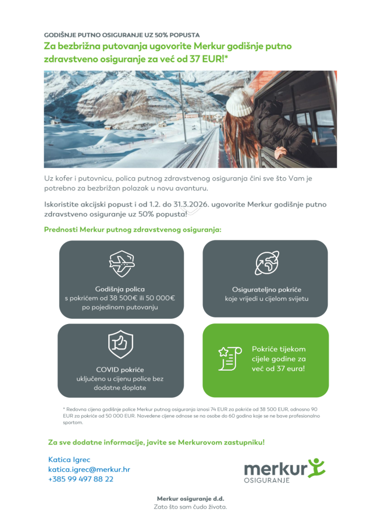 kao dio naših stalnih napora da vam osiguramo što više vrijednih pogodnosti, u suradnji s Merkur osiguranjem omogućili smo vam posebne popuste na police dopunskog, dodatnog i imovinskog osiguranja — za vas i vaše članove obitelji!