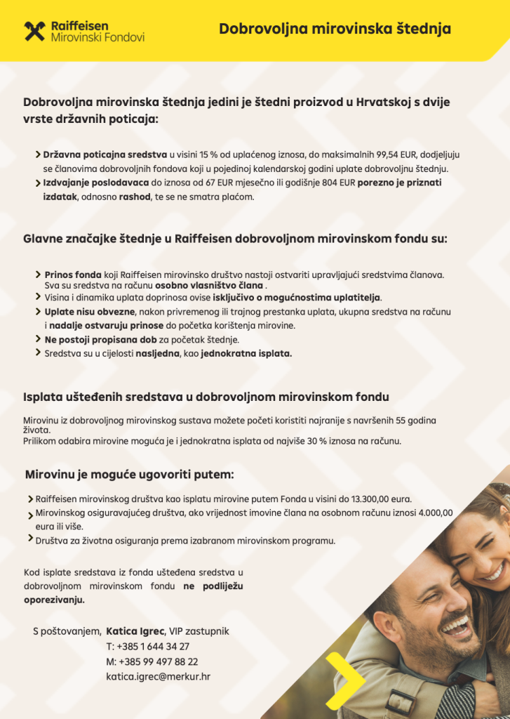 – Mogućnost povoljnijeg ugovaranja životnog osiguranja i učlanjenja u Raiffeisen mirovinski fond