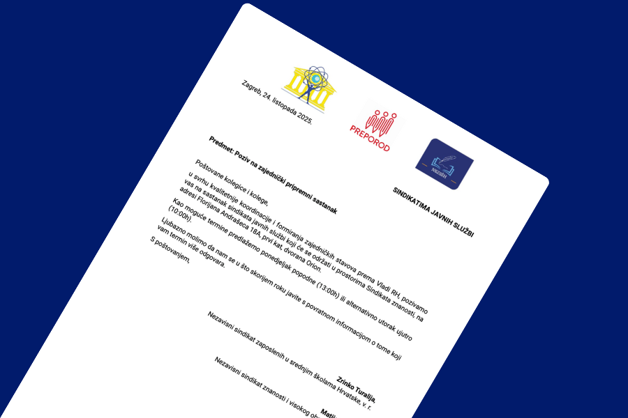 u svrhu kvalitetnije koordinacije i formiranja zajedničkih stavova prema Vladi RH, pozivamo vas na sastanak sindikata javnih službi koji će se održati u prostorima Sindikata znanosti, na adresi Florijana Andrašeca 18A, prvi kat, dvorana Orion.