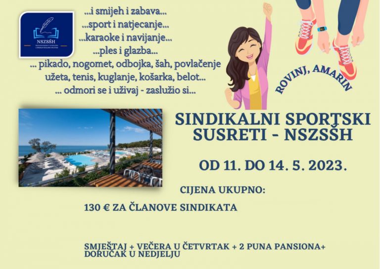 pozivamo vas na sportske susrete Nezavisnog sindikata zaposlenih u srednjim školama Hrvatske koji će se održati u Turističkom naselju Amarin**** u Rovinju od 11. do 14. svibnja 2023. godine.